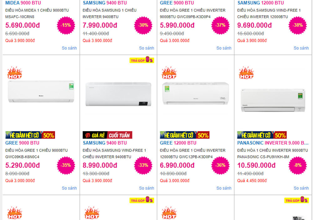 Ngoài ra, nhiều cửa hàng và siêu thị điện máy còn miễn chi phí lắp đặt, vận chuyển, tặng ống đồng, vật tư, tăng thời hạn bảo hành, tặng voucher, cho mua trả góp với lãi suất 0%...