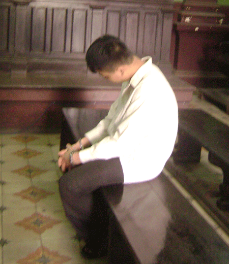 | Cảnh luôn cúi mặt ngượng ngùng vì hành vi mình gây ra |