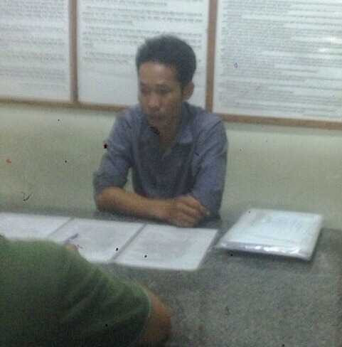 | Đối tượng Hồ Minh Vũ tại cơ quan công an |