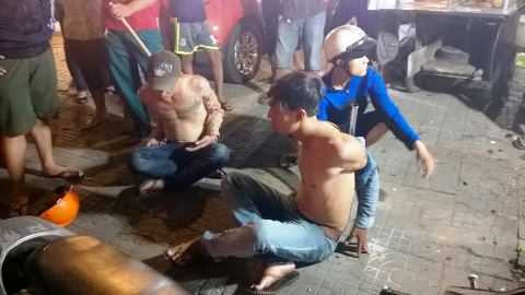 Hai đối tượng cướp bị hiệp sỹ bắt giữ ngay sau khi gây án. Ảnh: Tử Long