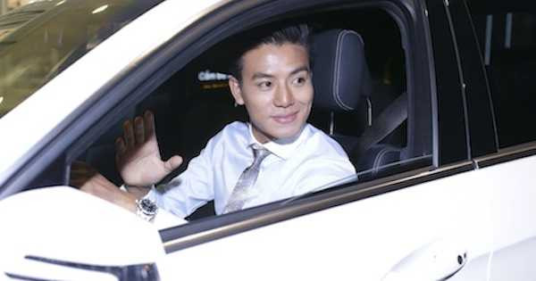 | Hiếu Nguyễn tự lái chiếc xe sang bạc tỷ trong lễ ra mắt phim 'Ám ảnh' tại TP.HCM. |