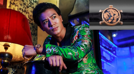 Kết hợp để làm nên một tổng thể hài hoà, đẳng cấp cho bộ trang phục là chiếc đồng hồ chạm khắc hình rồng vàng Onyx Dragon (788 triệu đồng) đến từ thương hiệu đình đám Speake-Marin.