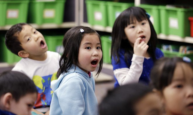 Các học sinh tại quận Cam (Mỹ) trong một giờ học.