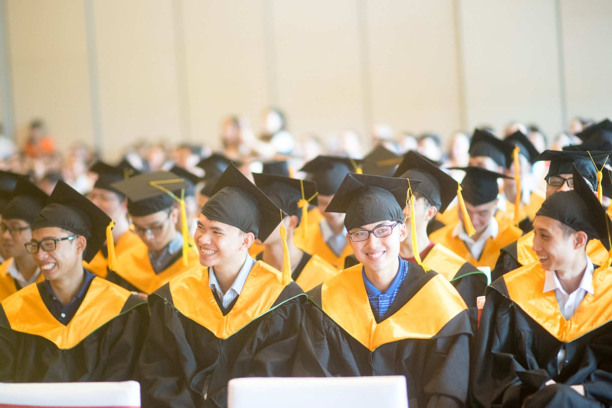 Lễ tốt nghiệp đợt 2 của Đại học FPT tại Trung tâm Hội nghị Quốc gia đã được các nam nữ sinh viên của trường đón nhận với tâm lý háo hức, vui vẻ. Các chàng trai, cô gái vui mừng khi được khoác lên mình bộ áo cử nhân.
