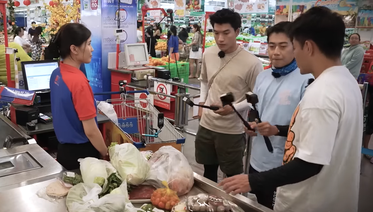 Lúc này đội Sà bì chưởng cũng vừa chọn đồ xong và tới quầy thanh toán. Lập tức, nhân viên thu ngân mách với Trường Giang: "Anh ơi, đồ của anh Hiếu và anh Lê Dương Bảo Lâm chưa thanh toán".