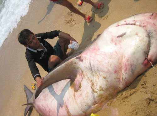 Chủ nhân của con, ông Trần Văn Đực (SN 1953 - Trú thôn Phú Một, xã Xuân Phương, thị xã Sông Cầu, tỉnh Phú Yên) cho biết: “Tôi cùng người con trai tên Trần Văn Quang đã phát hiện con cá mập mắc vào lưỡi câu của mình khoảng 6h sáng cùng ngày. Khi bị phát hiện, con cá mập vẫn còn khỏe mạnh nên hai cha con ông phải gọi thêm các thuyền câu xung quanh cùng 7 ngư dân khác đập cho con cá chết rồi mới đưa vào bờ.