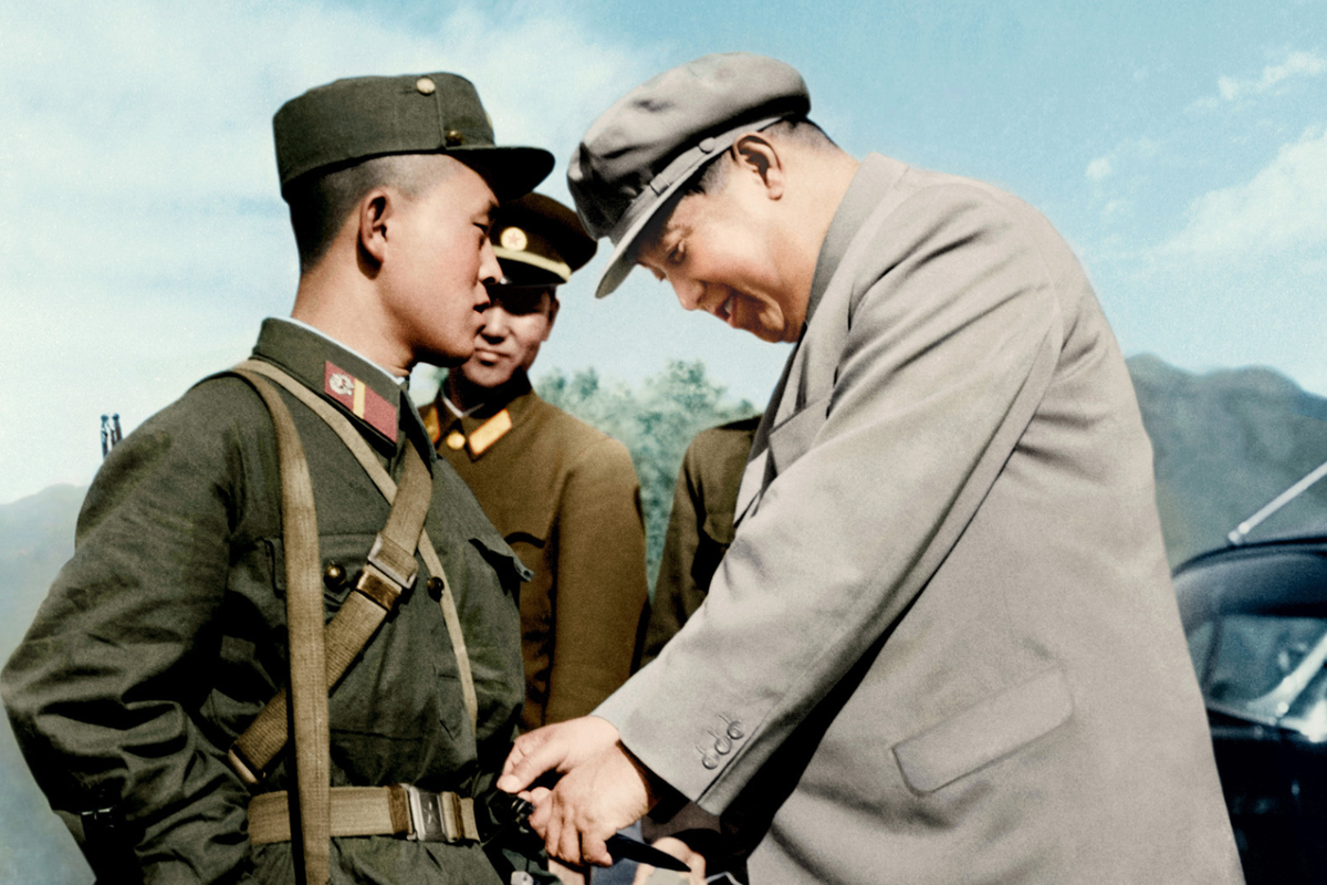 Ông Kim Nhật Thành kiểm tra vũ trang của một chiến sĩ quân đội Triều Tiên, tháng 5/1965.