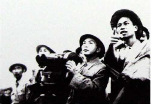 | Đại tướng Võ Nguyên Giáp và trung tướng Song Hào, Chủ nhiệm Tổng cục Chính trị Quân đội Nhân dân Việt Nam quan sát Đại đội 6, Trung đoàn 233, Đoàn Cao xạ Đống Đa huấn luyện (Tết Mậu Thân 1968). |