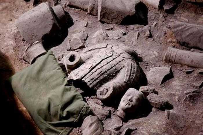 Trong lần khai quật thứ nhất hồi những năm 1990, có 8 bức tượng đất nung không bị vỡ nát và còn nguyên màu sắc được tìm thấy