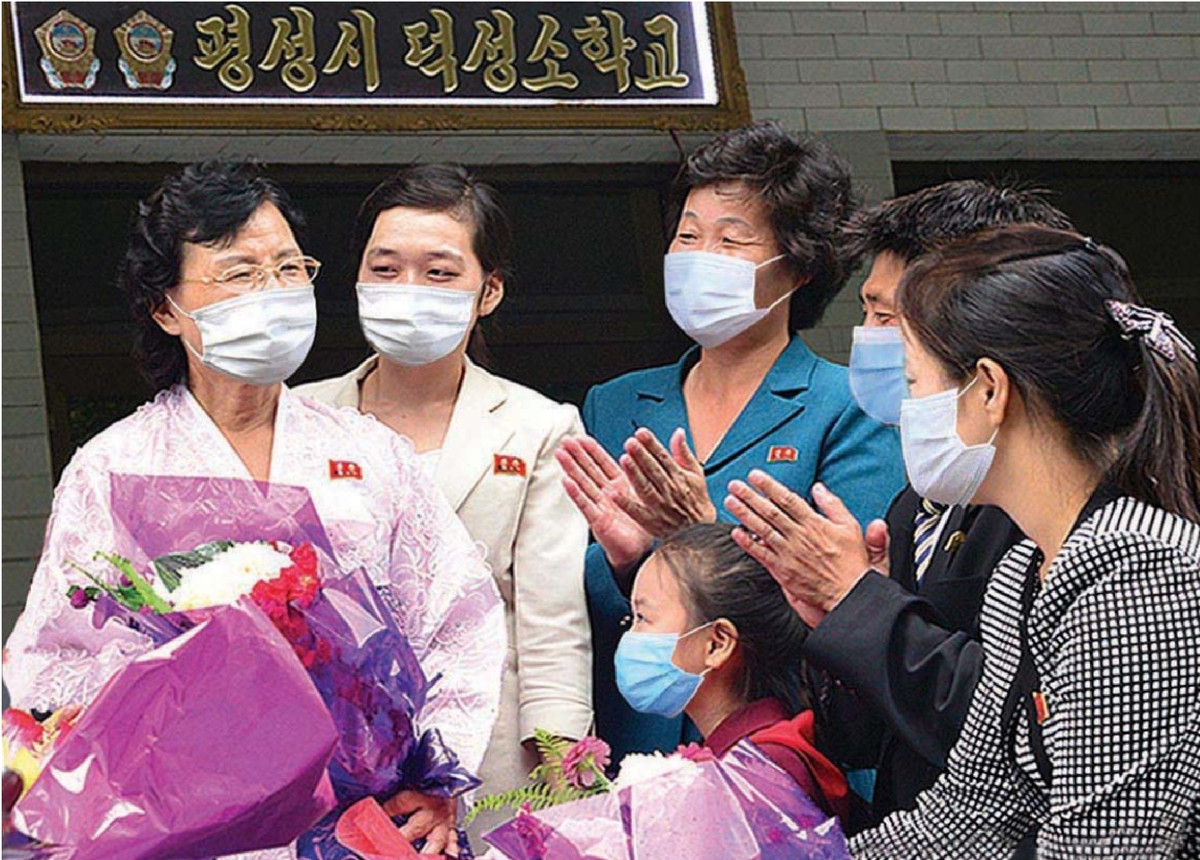 Các sinh viên Triều Tiên tặng hoa cho giáo viên của mình nhân ngày Quốc tế Phụ nữ 8/3.