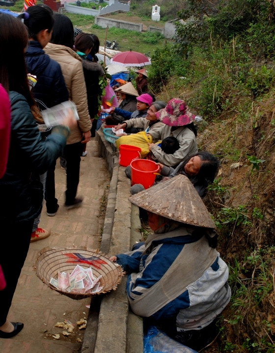 | Dọc theo con đường lên lễ Mẫu Thượng ngàn thường trực hàng chục người ăn xin kêu khóc, van nài du khách “rủ lòng thương”. |