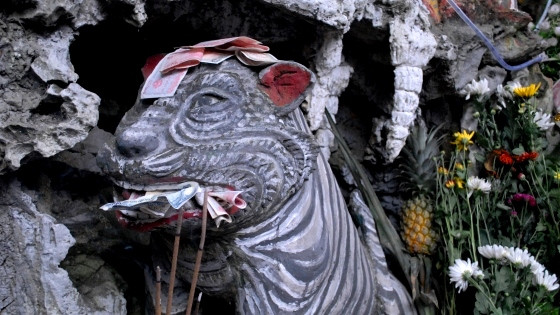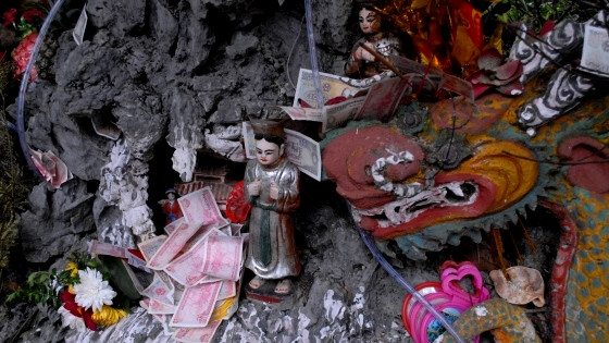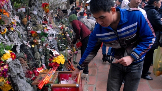 | Tới đền thờ bà Chúa, tiền lẻ được nhồi nhét khắp nơi. Họ sẵn sàng chịu thiệt để đổi tờ 100 ngàn đồng lấy 90 tờ 1000 đồng và rải từ trong ra ngoài. |