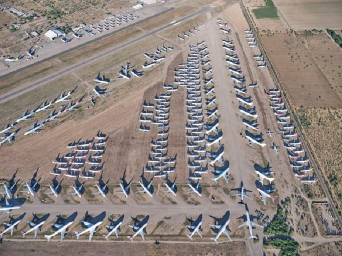 Hàng loạt máy bay đỗ trên đường băng của sân bay Alliance khi đường băng ở đây bị đóng cửa vô thời hạn vì đại dịch COVID-19. (Ảnh: Andy Luten/Andy's Travel Blog)