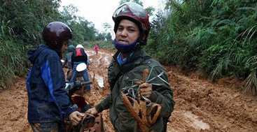 Chiếc xe máy bị biến dạng khi đi qua những vùng đầy bùn lầy