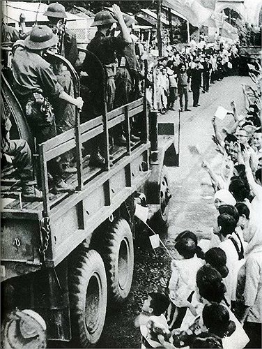 Người dân Sài Gòn chào đón quân giải phóng trở về.