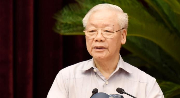 Sau khi nghe các ý kiến tham luận, Tổng Bí thư Nguyễn Phú Trọng - Trưởng Ban Chỉ đạo Trung ương về phòng, chống tham nhũng, tiêu cực phát biểu kết luận hội nghị.