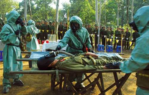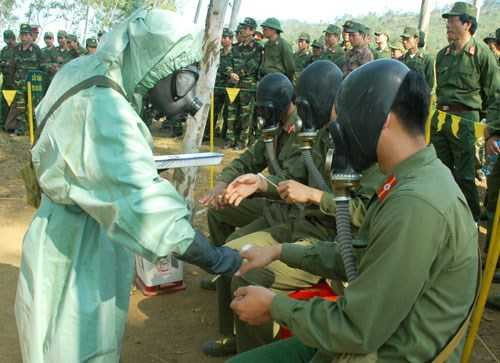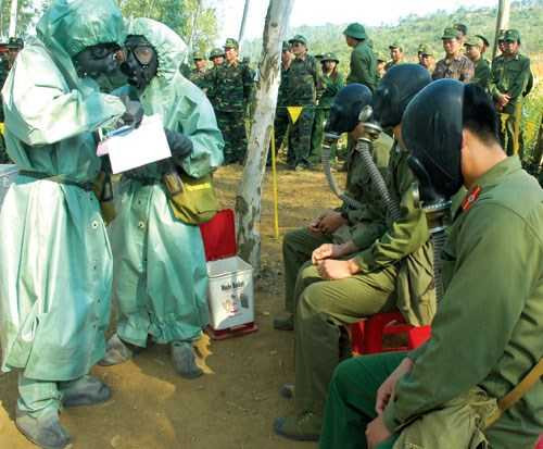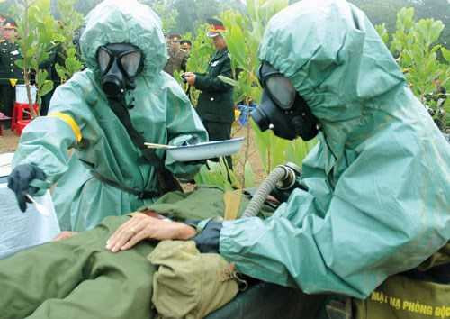 Trong những tình huống khu vực có vũ khí hóa học, “thương binh” được cấp cứu kịp thời.