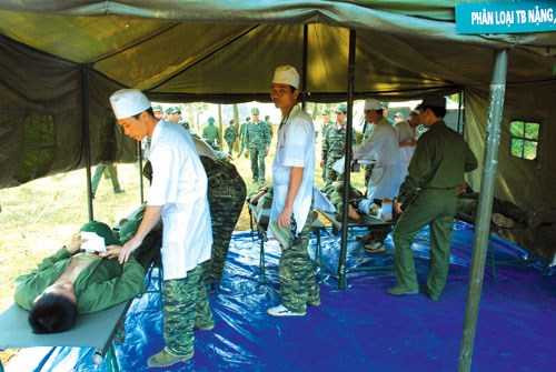 Song song với việc học tập trên giảng đường, thực hành trên mô phỏng, tại bệnh viện, thì việc tham gia các đợt diễn tập thực binh đã giúp cho học viên của Học viện Quân y những bài học kinh nghiệm bổ ích, thiết thực trong tình huống cấp cứu thương binh tại hỏa tuyến.