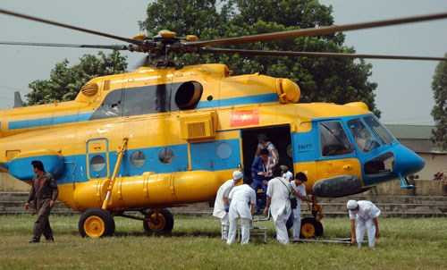 Máy bay trực thăng của Quân chủng Phòng không – Không quân cùng cán bộ y tế, học viên của Học viện Quân y tham gia diễn tập cứu hộ, cứu nạn.