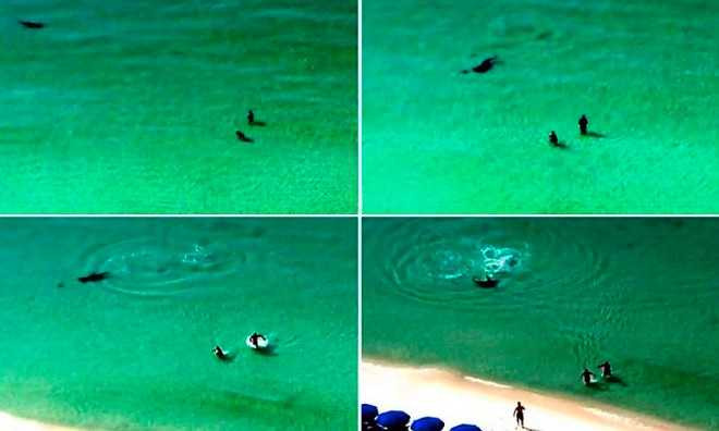 Hình ảnh khiếp sợ du khách bị cá mập rượt đuổi ngay sát bãi biển