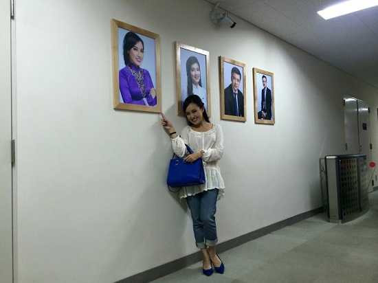 Có lẽ, khán giả đã rất quen thuộc khi thấy Hoài Anh mặc trang phục áo dài khi lên sóng Thời sự nhưng ít ai được thấy hình ảnh phía sau những khuôn hình trực tiếp. |