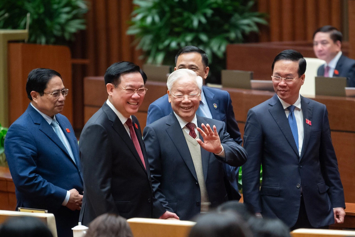 Tổng Bí thư Nguyễn Phú Trọng, Chủ tịch nước Võ Văn Thưởng dự phiên khai mạc kỳ họp.