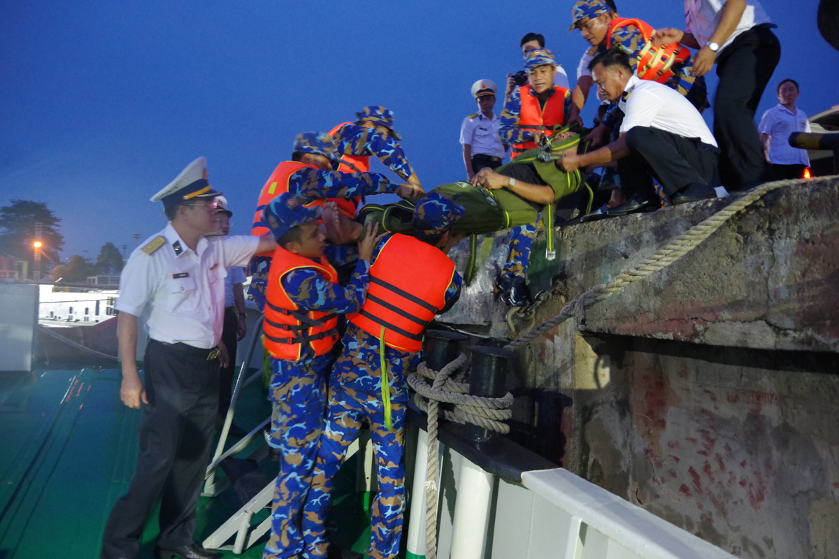 Lực lượng tìm kiếm chuyển nạn nhân từ tàu gặp nạn lên bờ.