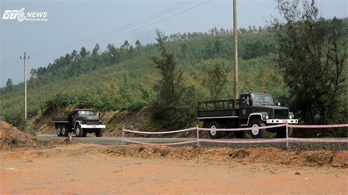 Đoàn xe tiêu binh tổ chức diễn tập sáng nay. Đoàn xe chạy từ sân bay Đồng Hới tới thẳng khu vực an táng.