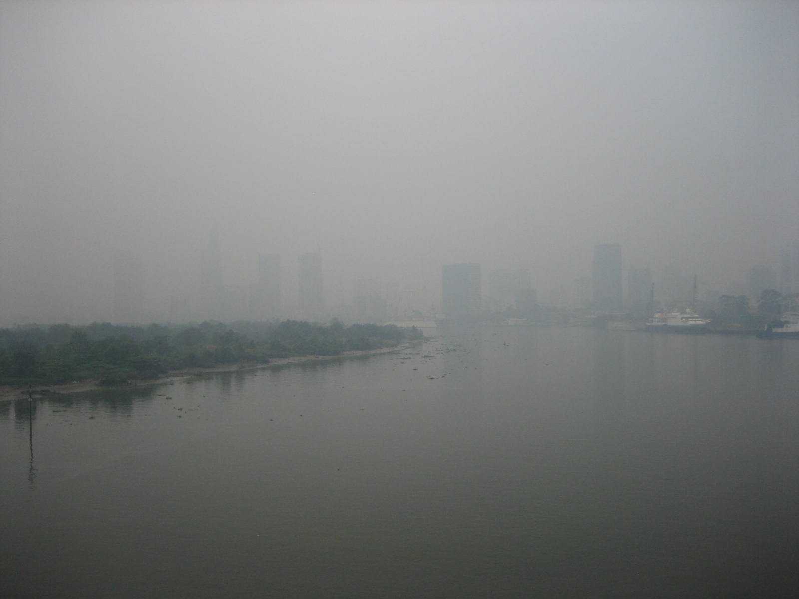 Tại khu vực Cầu Sài Gòn (quận 2 và quận Bình Thạnh), từ vị trí này chúng tôi có thể quan sát được trên diện rộng, hai bên bờ sông Sài Gòn gần như chìm trong màn khói hư ảo.