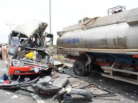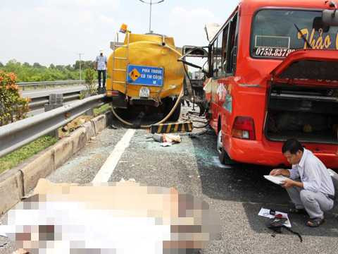 Khi đến đoạn km 45+200 thuộc địa bàn tỉnh Tiền Giang, chiếc xe khách tông mạnh vào chiếc xe bồn chở nước mang BKS: 0258 đang tưới nước bên đường. Cú va chạm cực mạnh khiến tất cả những hành khách trên xe bị thương nặng.