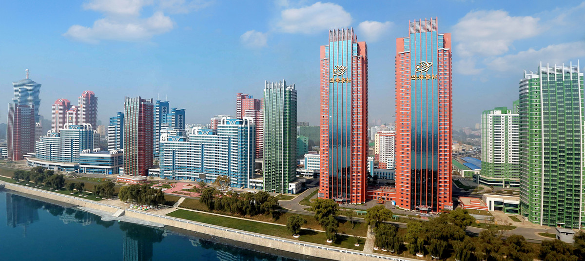 Những ngôi nhà mới dựng lên dọc sông Taedong. Người dân được cấp nhà miễn phí ở Triều Tiên.