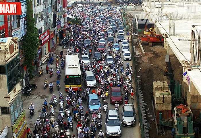 Khiến các xe máy lưu thông qua đây phải chạy lên vỉa hè, tuy nhiên vỉa hè của tuyến đường này cũng ngay lập tức rơi vào tình trạng tắc nghẽn.