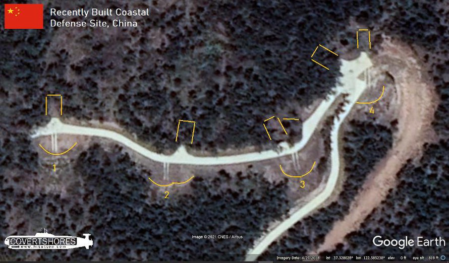 Địa điểm phòng thủ này, theo các chuyên gia tình báo nguồn mở, được xây dựng trong 3 giai đoạn từ năm 2010. Có bốn vị trí bắn được xây dựng trên sườn đồi hướng ra biển. Các vị trí có boongke gần như trực tiếp phía sau, và các mảng tường chắn ở phía trước. Dường như có đường dành cho xe bánh lốp (nhiều hệ thống trước đó sử dụng đường ray).