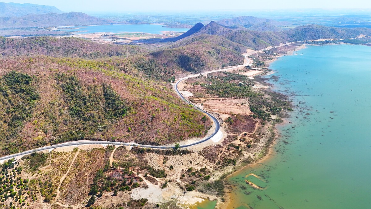 Từ trên cao, con đường như dải lụa quấn quanh núi đồi.