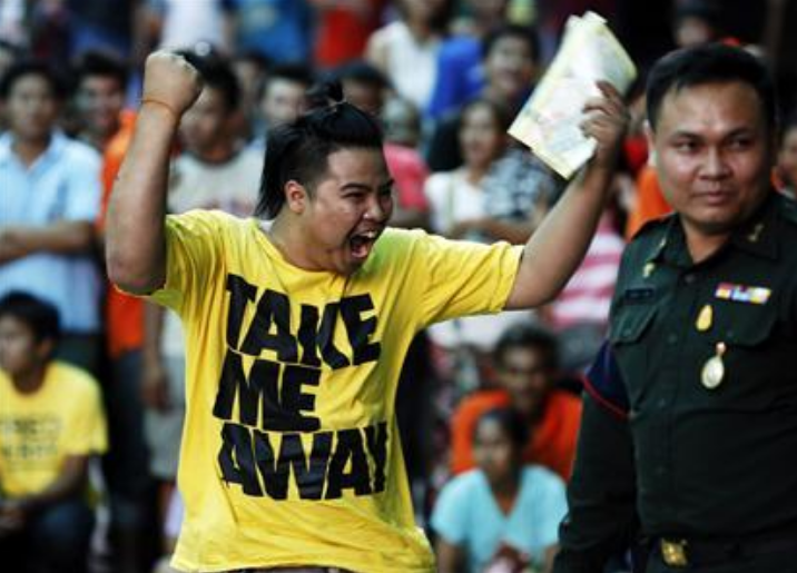 Winai Sawaengkarn nhắm mắt trước khi đưa tay vào chiếc hộp gỗ và rút ra tấm thẻ màu đen. Chàng trai 21 tuổi hét lên sung sướng trong khi người mẹ của anh giàn dụa nước mắt hạnh phúc vì con trai sẽ không phải đi nghĩa vụ quân sự.