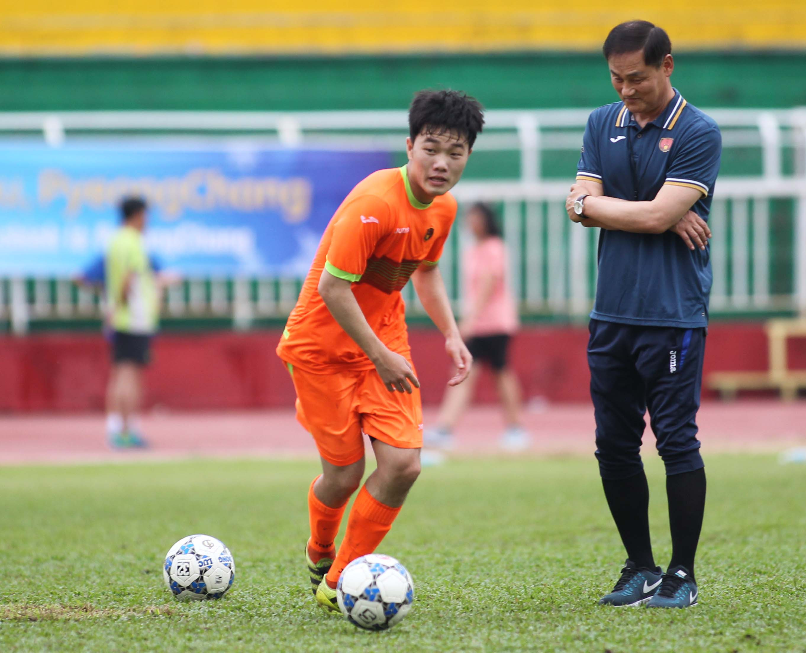 Xuân Trường và HLV trưởng Gangwon - ông Choi Yun-kyum (Ảnh: Duy Anh)