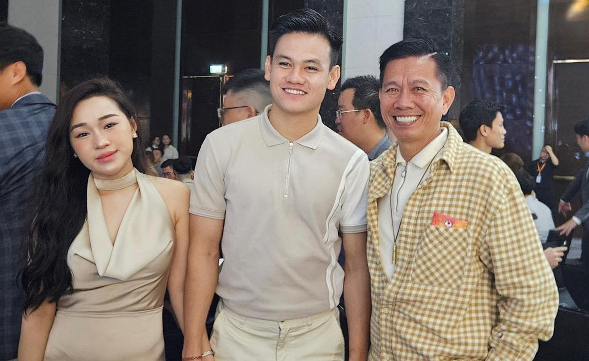 Văn Lâm và bạn gái Yến Xuân đến chúc mừng đôi vợ chồng trẻ.