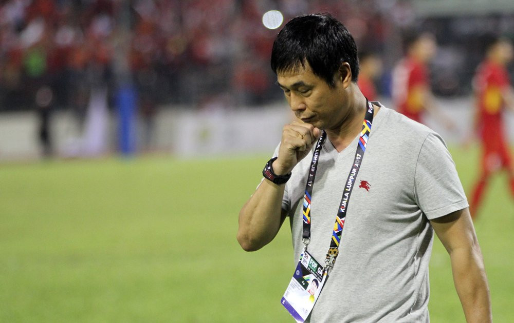 HLV Hữu Thắng vô cùng tiếc nuối sau trận. (Ảnh: Hà Thành)