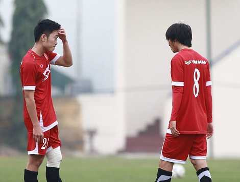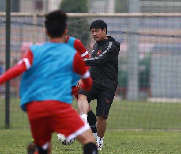 (VTC News) - HLV Hữu Thắng xỏ giày vào thi đấu cùng Tuấn Anh, Xuân Trường trong buổi tập sáng nay.