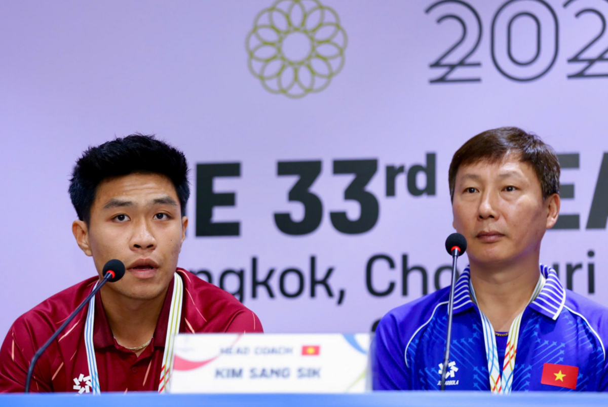 Trưa 17/12, buổi họp báo trước trận chung kết bóng đá nam SEA Games 33 giữa U22 Việt Nam và U22 Thái Lan diễn ra tại sân Rajamangala, Bangkok. Khi được hỏi về vấn đề trọng tài, HLV Kim Sang-sik cho biết ông không lo ngại về các quyết định của trọng tài.