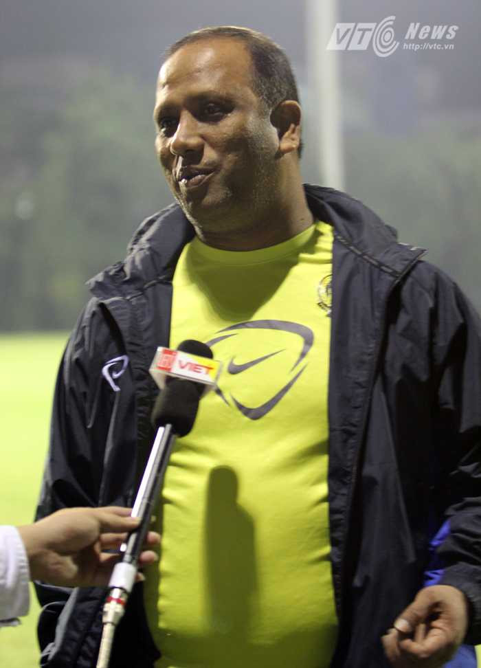 | HLV Dollah Salleh trả lời báo giới Việt Nam bên lề buổi tập (Ảnh: Hà Thành) |