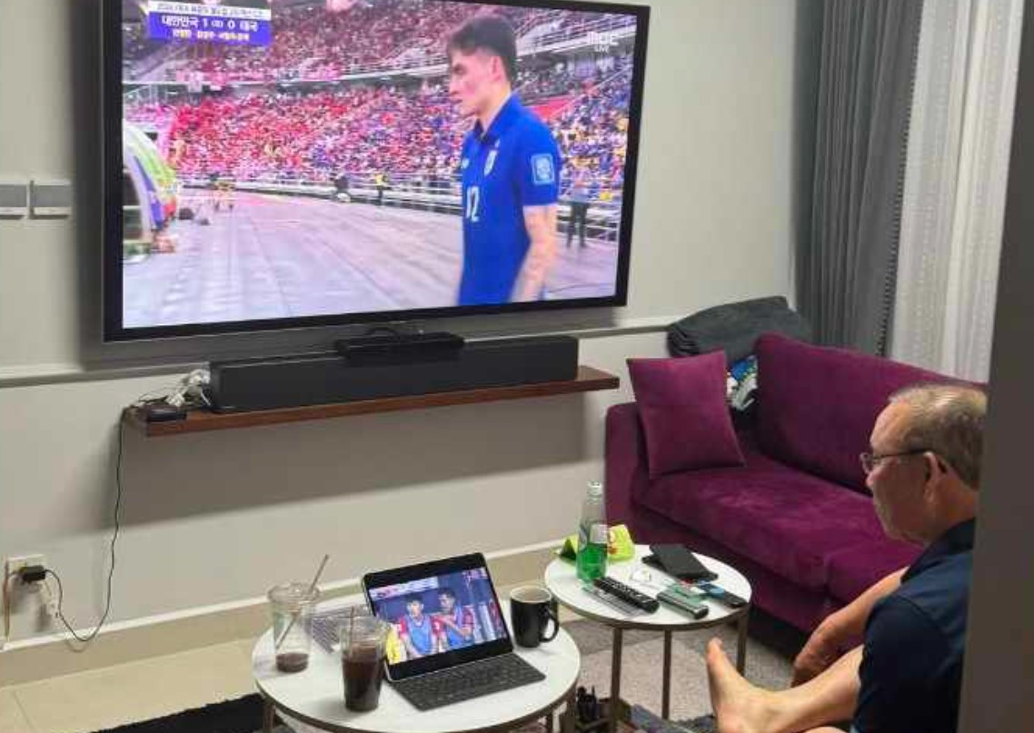 Trên trang cá nhân, Park Chan Sung đăng hình HLV Park Hang Seo dùng hai màn hình để xem bóng đá. Trên vô tuyến, ông bật trận Hàn Quốc gặp Thái Lan, trong khi laptop dùng để cổ vũ tuyển Việt Nam trong trận gặp Indonesia.