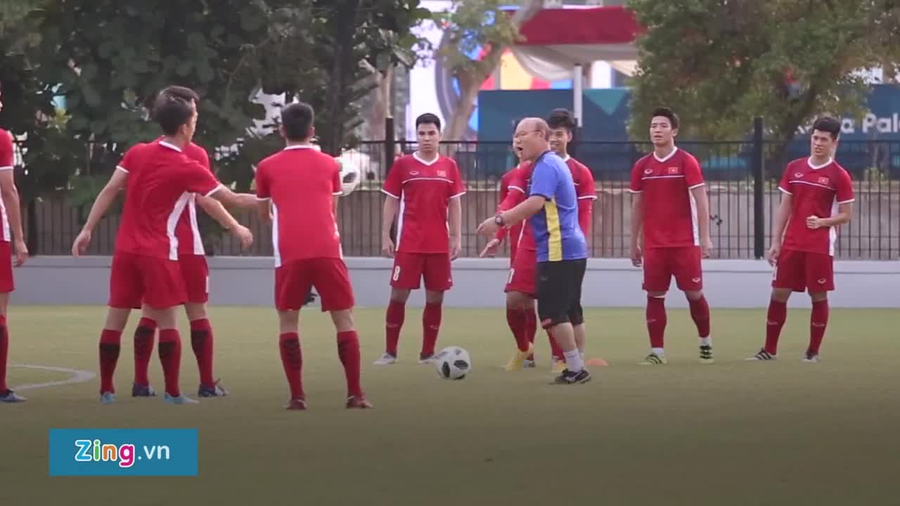 HLV Park Hang-seo làm trọng tài cho các học trò trong buổi tập trước trận gặp Syria