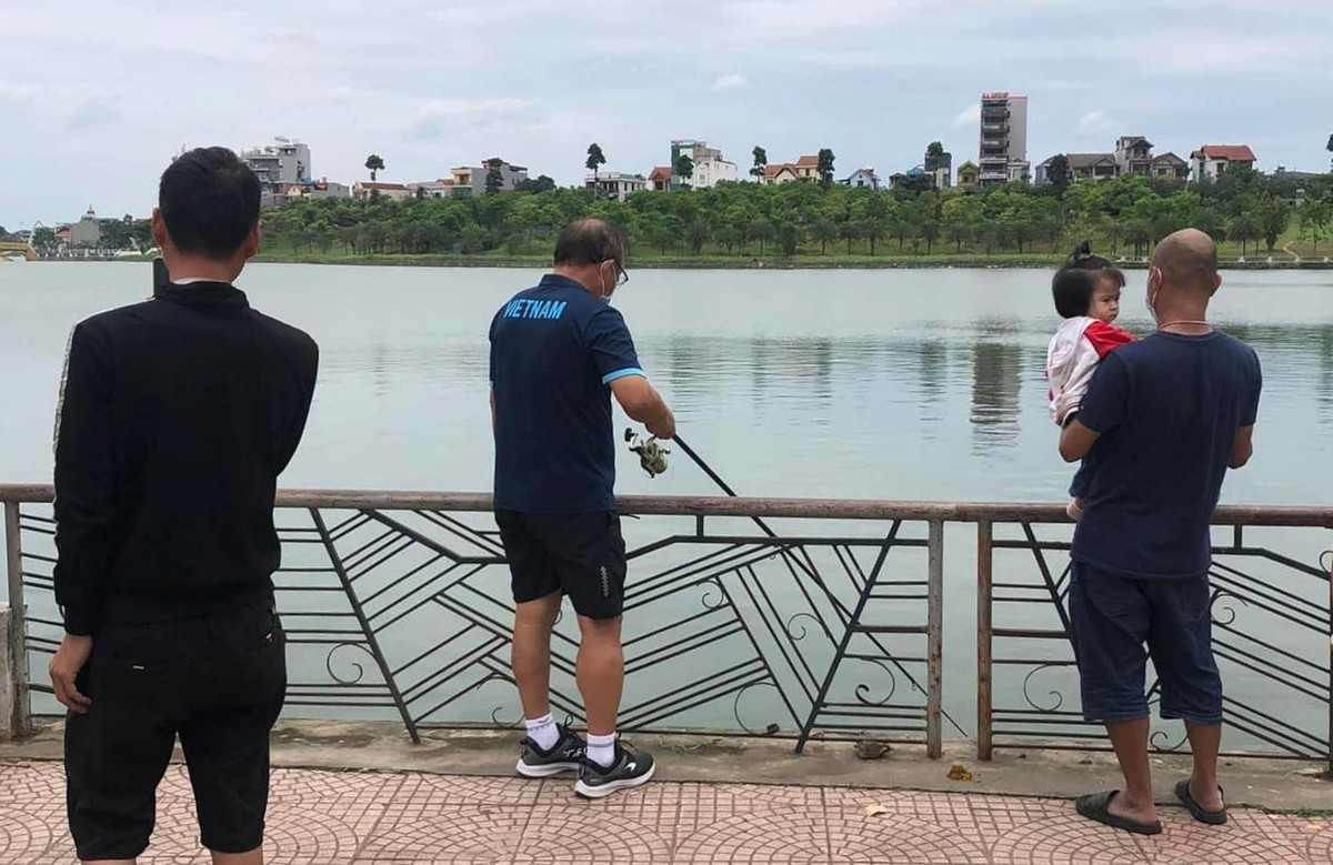 Anh H. cho biết ông Park câu dính một con cá chép. Đoạn clip trên mạng xã hội quay cảnh HLV U23 Việt Nam giật một con cá lên bờ. Đó cũng là thành quả cả buổi sáng của anh H. Buổi câu hôm nay có thêm niềm vui là anh H. được gặp HLV trưởng U23 Việt Nam. Khoảng 15h, anh thu cần về đón con.