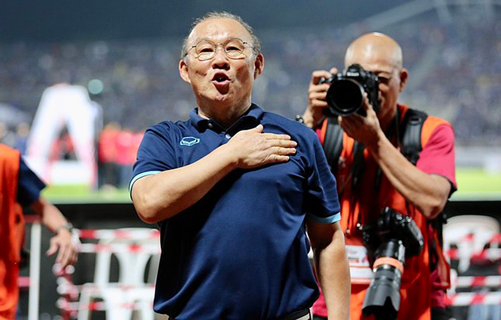 HLV Park Hang Seo cảm ơn người hâm mộ trong trận cuối cùng với tuyển Việt Nam. Ảnh: Hữu Phạm