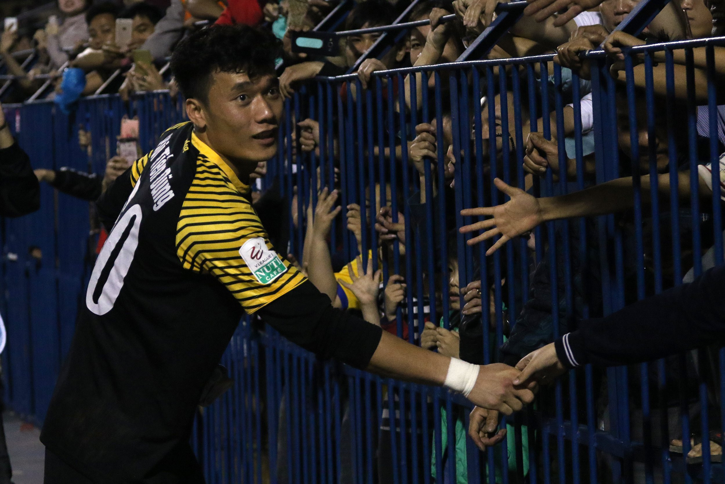 Cổ động viên ở khán đài A liên tục gọi tên Tiến Dũng sau trận đấu. Thủ môn 20 tuổi đi một lượt bắt tay các khán giả qua hàng rào sau trận đấu.