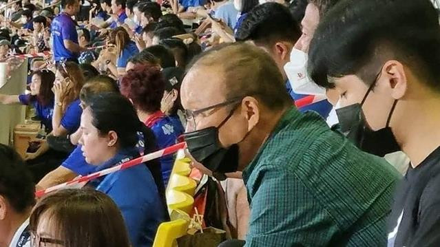 Dù đã đeo khẩu trang và ngồi ở hàng ghế bình thường như bao khán giả khác để tránh sự chú ý, nhà cầm quân người Hàn Quốc vẫn bị các fan Thái Lan phát hiện và chụp ảnh đăng lên mạng bởi ông đã quá nổi tiếng tại khu vực Đông Nam Á.