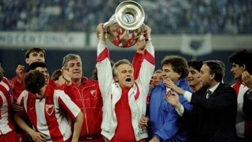 Ông Petrovic nâng cúp vô địch European Cup 1990/91 sau chiến thắng trước Marseille. (Ảnh: Getty)