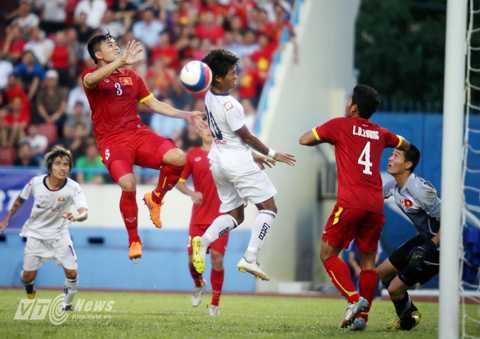 | Hàng thủ Việt Nam chơi không tốt trận đấu với U23 Myanmar (Ảnh: Quang Minh) |