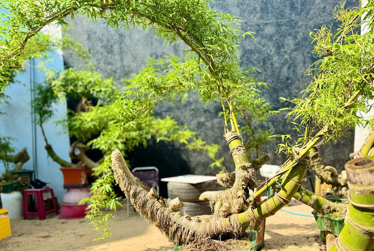 Đến với tre bonsai từ năm 2023, ban đầu anh Kha chỉ xem đây là thú chơi để giải tỏa căng thẳng sau giờ làm việc văn phòng. Thế nhưng càng tìm hiểu, càng say mê, anh dần dành trọn thời gian, công sức cho loại hình nghệ thuật này. Có thời điểm, khu vườn của anh sở hữu hơn 200 gốc tre bonsai với đủ dáng thế, kích cỡ.
